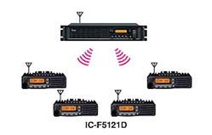 La serie IC-F5123D se puede utilizar en unsistema de enlace IDAS en un solo sitio. El sistema de enlace IDAS es un sistema distribuido sin control de canal dedicado, por lo que una mayor cantidad de canales de tráfico de voz están disponibles para aumentar la capacidad del sistema.